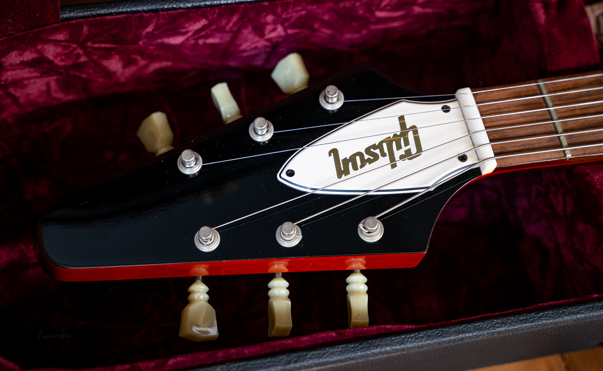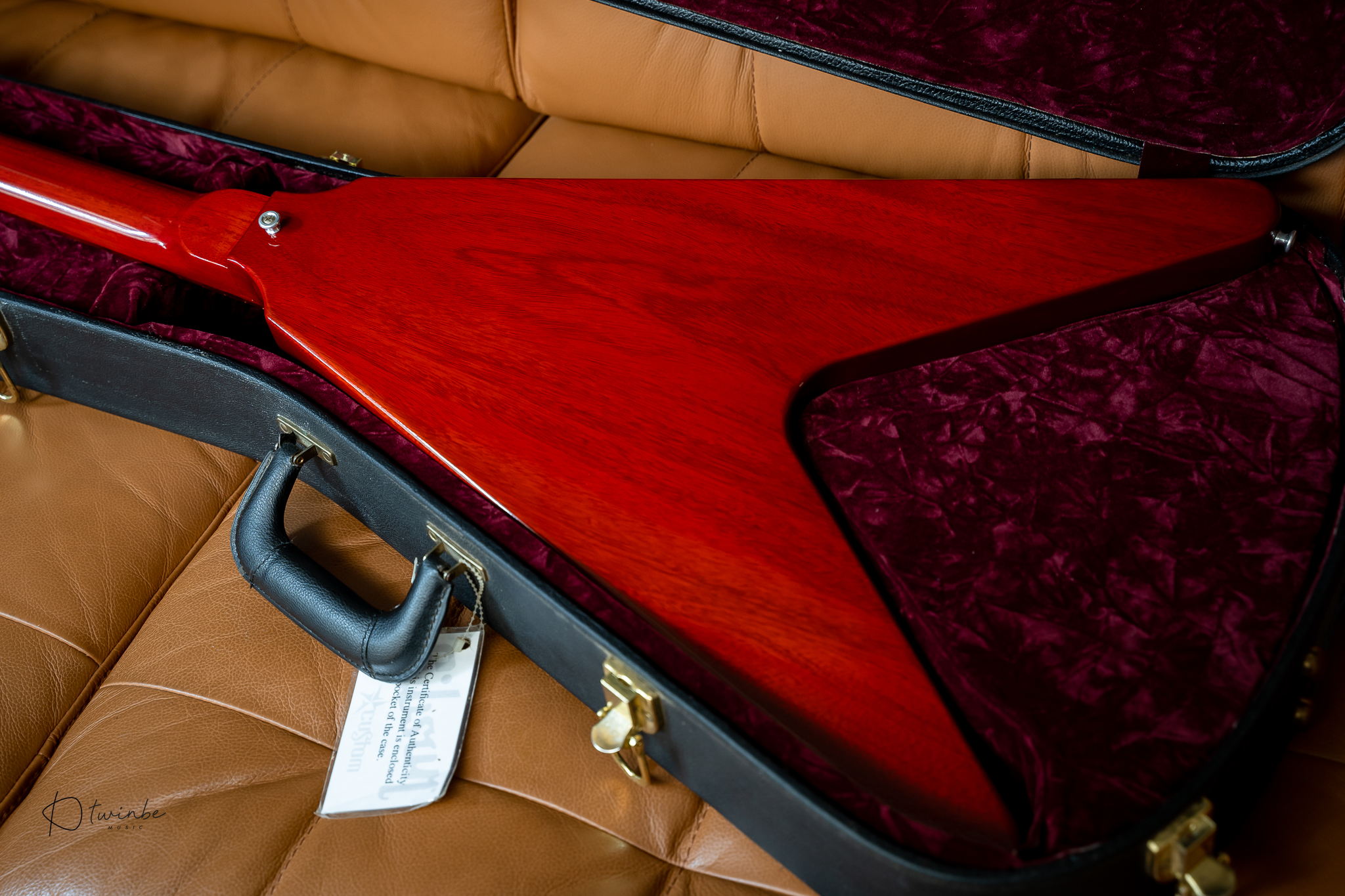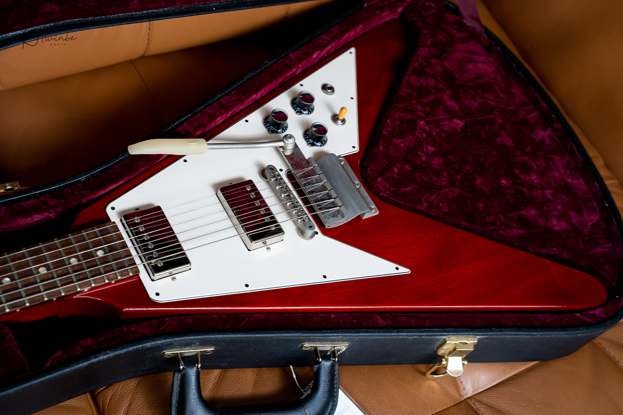 Gibson Custom Shop 1967 Reissue Flying V with Maestro Vibrola ผลิตปี 2020 จัดทำโดยอิงสเปคของ 1967 Flying V ยุคเดียวกับ "Psychedelic V" ของ Jimi Hendrix ใช้ในสมัยนั้น กีต้าร์สภาพเก็บสะสม น้ำหนักเบามาก (3.09 kg) เสียงดีแบบสุดๆ ความพิเศษอีกอย่างตัวนี้ serial number เลขสวยมาก #000007 เข้าใจว่าเป็นตัวแรกของรุ่นนี้ในปี 2020 มาพร้อมกล่อง , Certificate ,และเอกสารครบครับ
