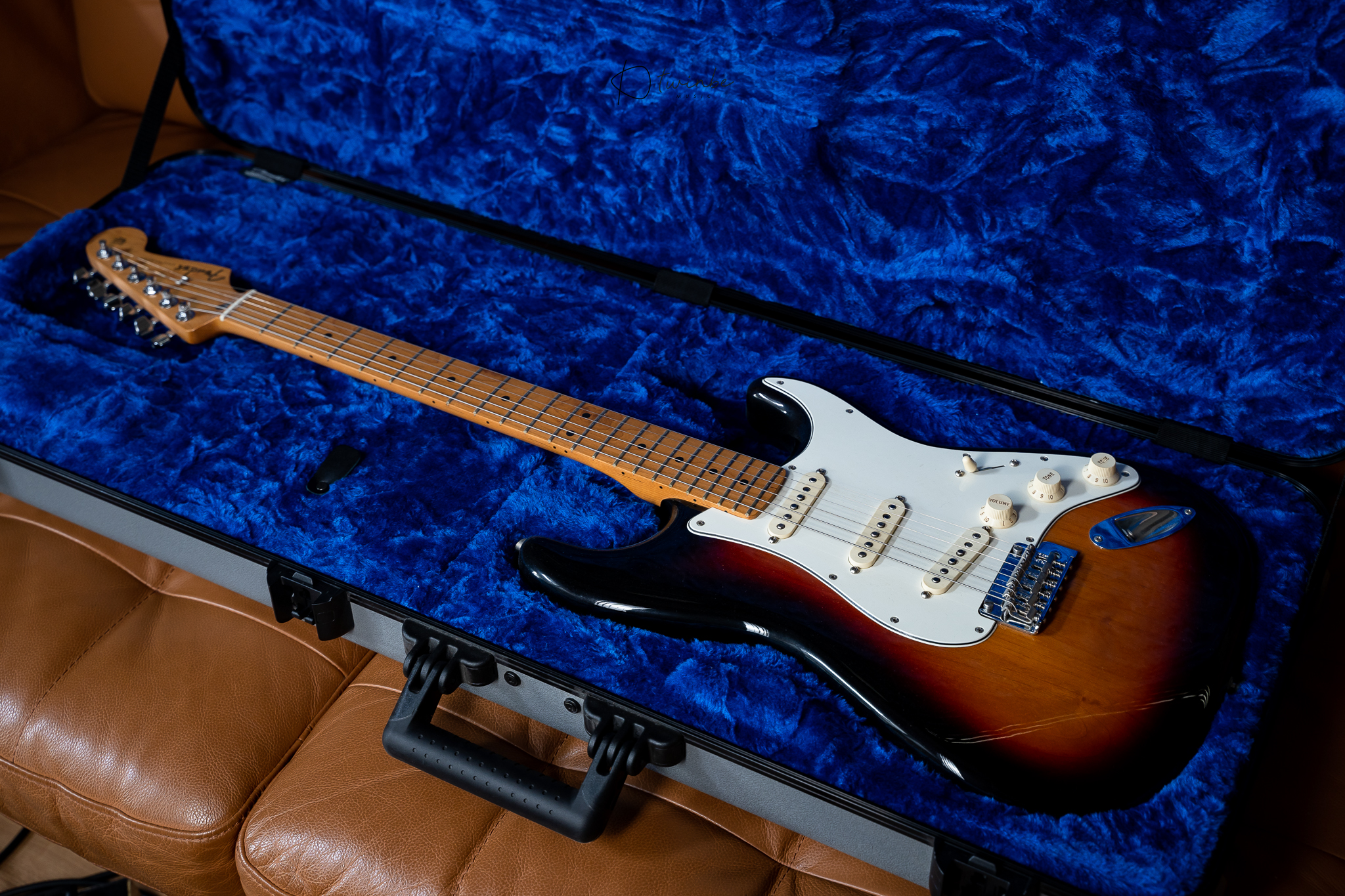 Fender Deluxe Molded Case Stratoaster/Telecaster Case สี Silver/Blue สภาพสวยกริ๊บ ใส่ได้ทั้งทรง Strat และ Tele มาพร้อมกุญแจ ครับ (ของใหม่ตัวแทน 8100)