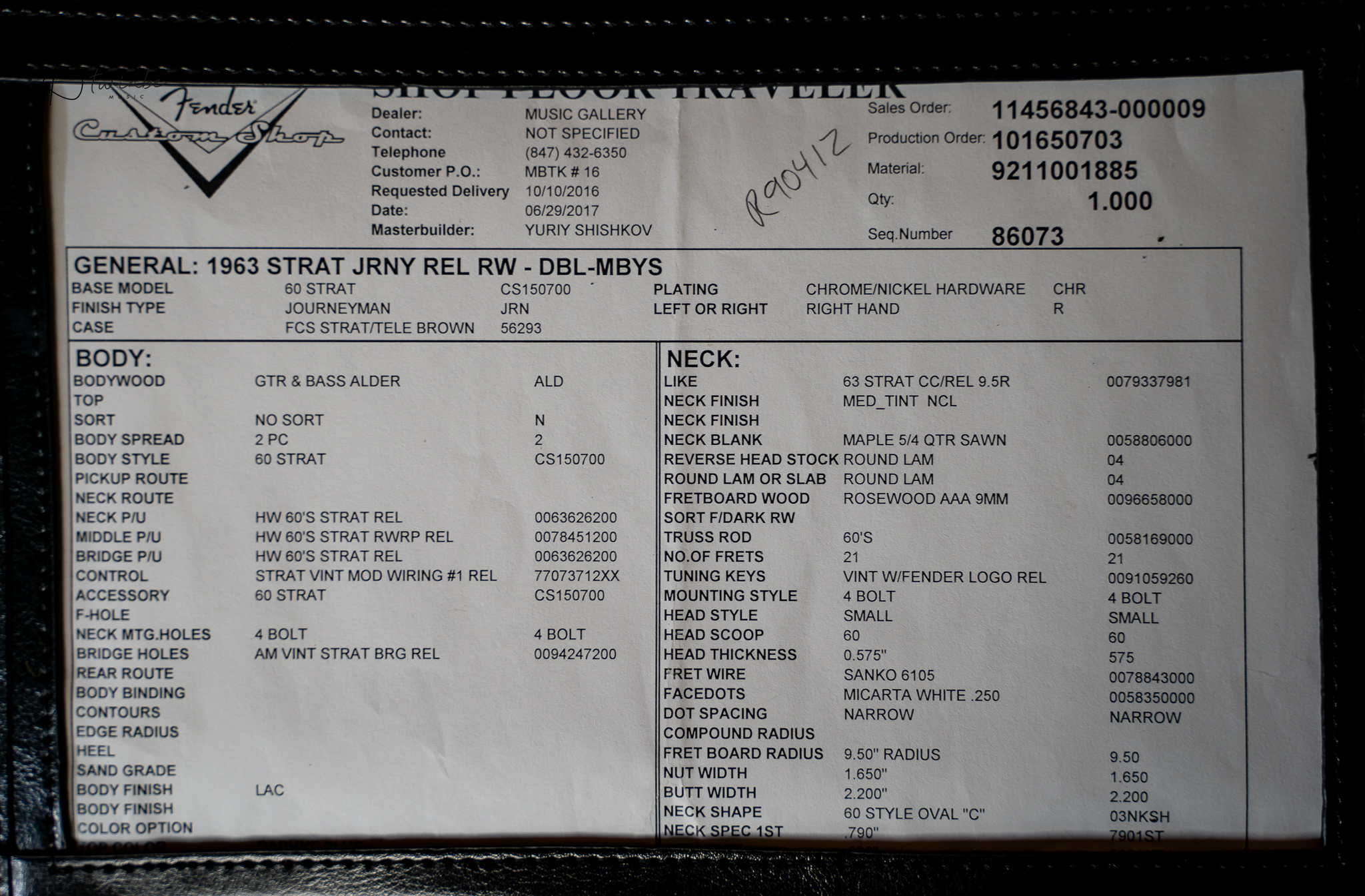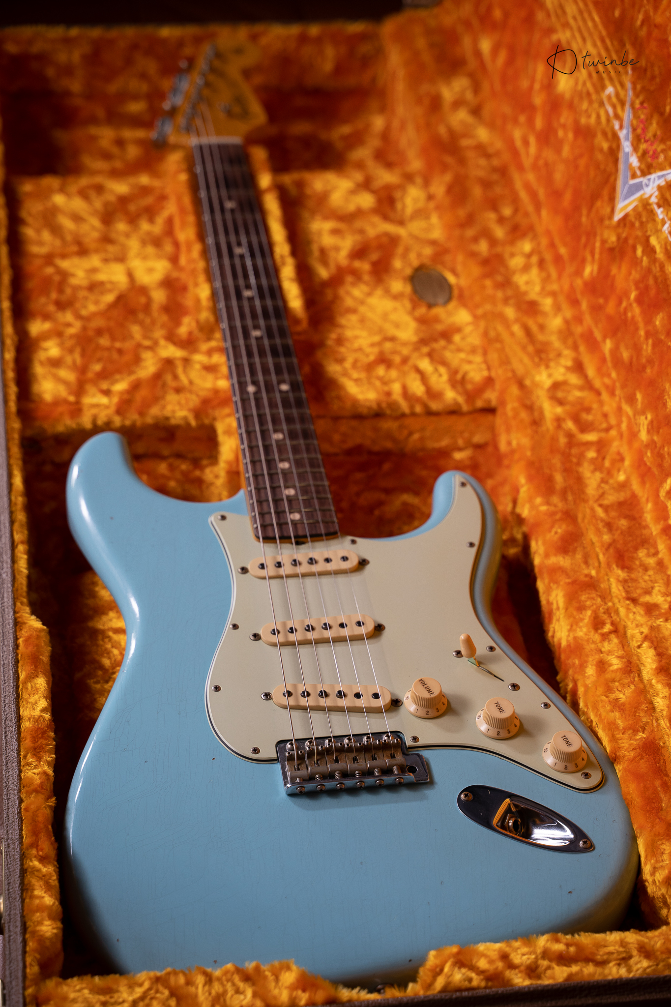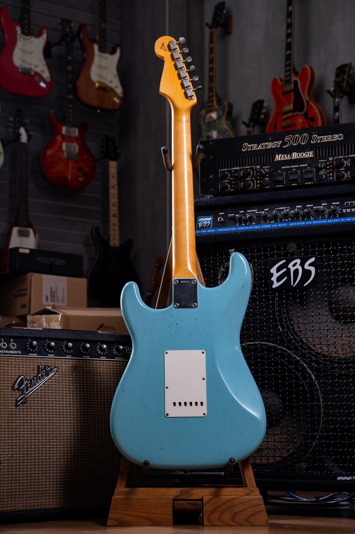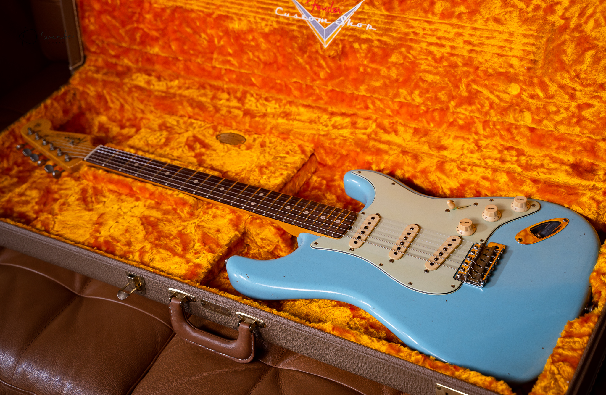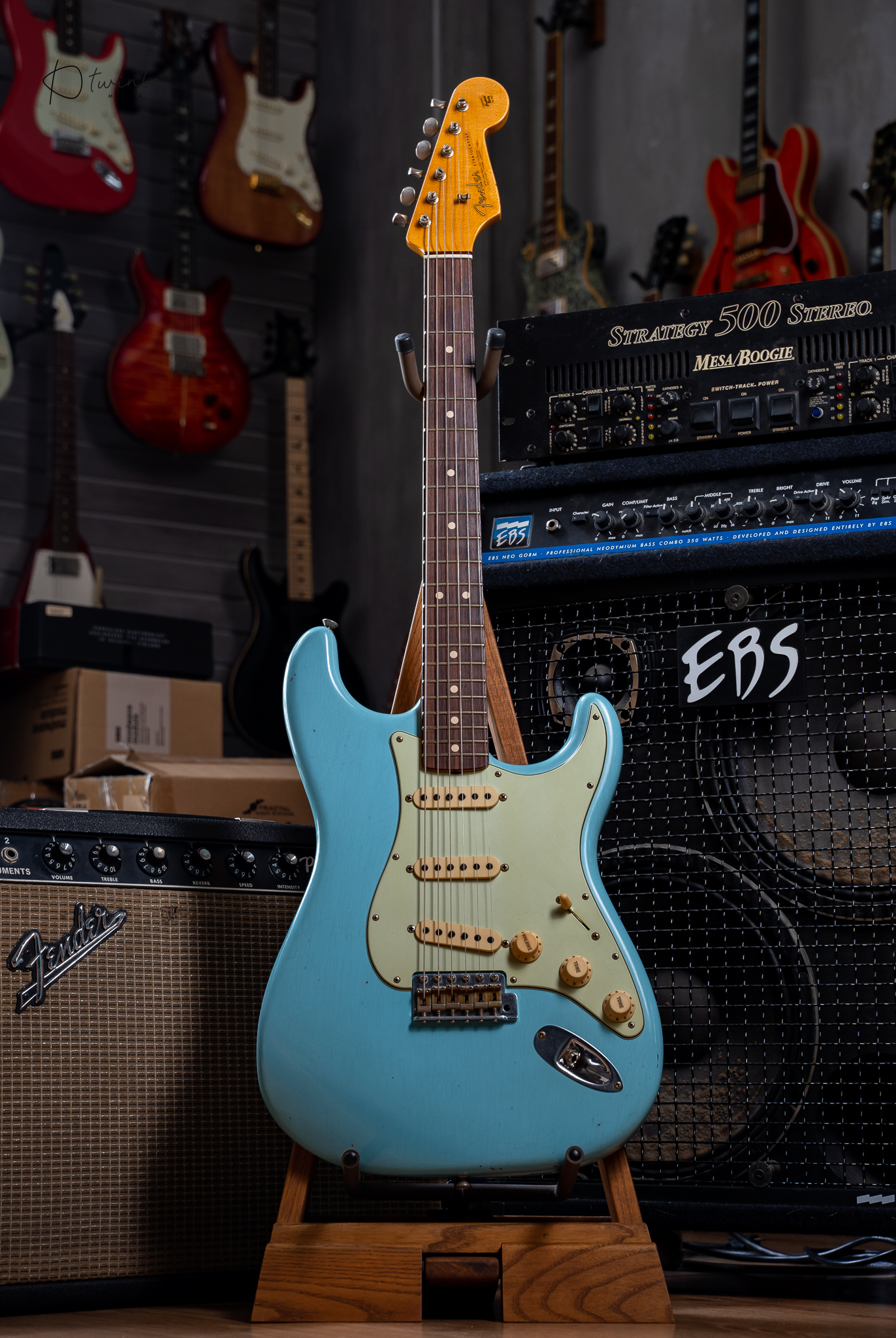 Fender Masterbuilt Yuriy Shishkov 1963 Stratocaster Journeyman Relic สี Sonic Blue สีนี้สวยมาก ผลิตปี 2017 สร้างโดย Senior Masterbuilder "Yuriy Shishkov" สภาพสวย เสียงดีสุดๆ มาพร้อมกล่อง , Certificate และอุปกรณ์ครบครับ (ของใหม่ตัวแทนประมาน 400,000)