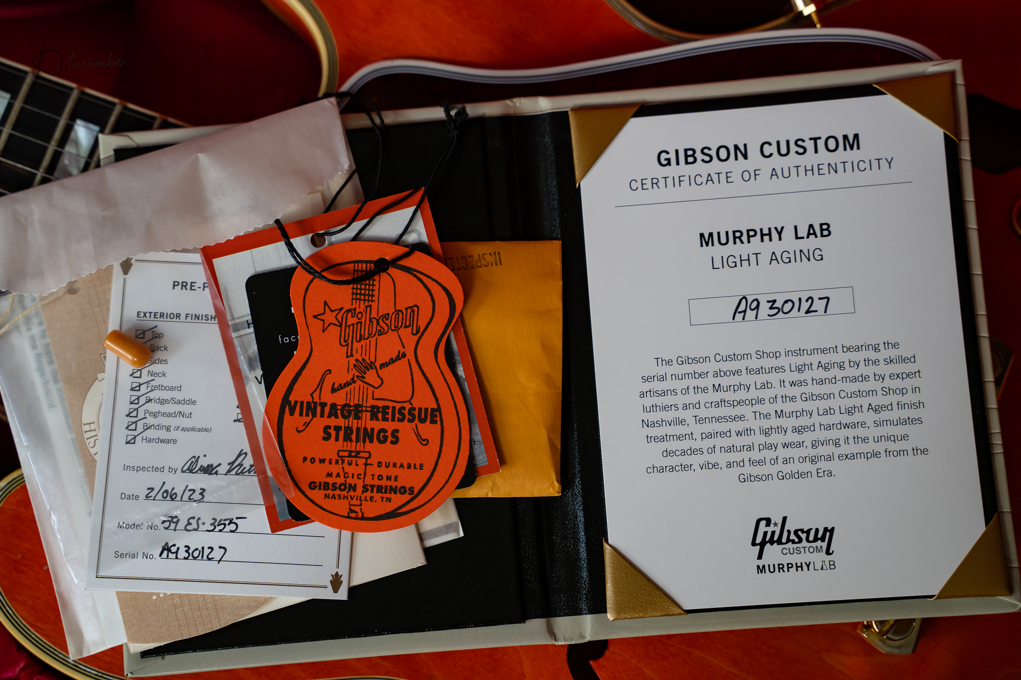 Gibson Custom Shop Murphy Lab 1959 ES-355 Light Aged สี Watermelon Red สร้างโดยอิงสเปคของ The King of Gibson ES นั่นก็คือ Gibson ES355 สีนี้ในยุค 1959 ทำออกมาน้อยมาก ก่อนที่ Gibson จะผลิตสีเชอรี่ในปี 1960 กีต้าร์สภาพสวย เสียงดีแบบสุดๆ มาพร้อมกล่อง , Certificate และเอกสารครับ (มือหนึ่งตัวแทน 297,000)